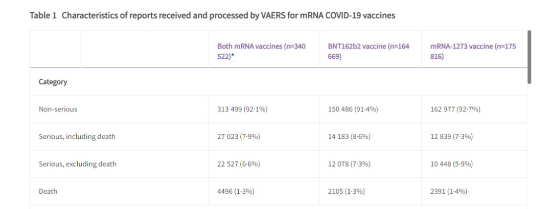 [2] Rosenblum HG,Gee J,Liu R,Marquez PL,et al.Safety of mRNA vaccines administered during the initial 6 months of the US COVID-19 vaccination programme:an observational study of reports to the Vaccine Adverse Event Reporting System and v-safe.Lancet Infect Dis.2022 Mar 7:S1473-3099(22)00054-8.doi:10.1016/S1473-3099(22)00054-8.Epub ahead of print.