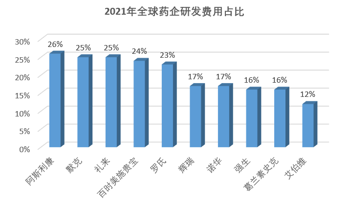 全球药物研发投入逐年增加,2024年预计全球研发投入将达到2,040亿美元,2020年-2024年全球研发支出占药品销售额的比重平均约为18.22%;全球投资回报率排名前十制药公司的研发投入与并购投资中约将65%用于研发支出。