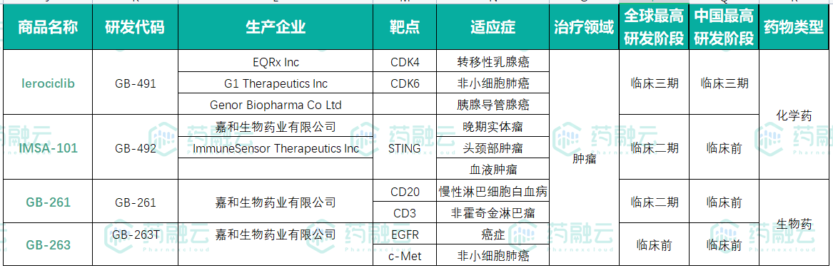 嘉和生物产品管线研发阶段