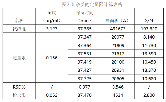 主成分的最小进样浓度=0.313/0.1%/1000=0.313mg/mL,当然这个浓度也可以适当的取大,可以定为0.5mg/mL,当然这里只是列举了一种杂质,当有多种杂质的时候,也要综合考虑其他杂质的定量限,(在0.5mg/mL的基础上)适当扩大或者缩小进样浓度。