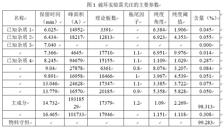 做专属性实验,绕不开的一个实验就是破坏实验,通过破坏实验,能及时发现一些潜在的讲解杂质或者样品中以后可能会出现的杂质,然后用现有的分析条件去测试,如果破坏实验后的样品经过你目前确认的分析方法实验,发现能够很好的将各种杂质都分开的话,那么说明你的分析方法专属性很强,足够满足以后检样的需求,如果你的分析方法专属性不强的话,很可能发生杂质之间分不开,或者存在严重的包峰,这说明目前的分析方法专属性不强,建议再重新制定分析方法。