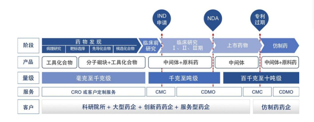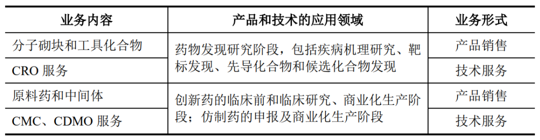 第一个阶段是成立之初到2010年,公司主要从事CRO定制服务,主要业务是在实验室完成,服务于跨国制药企业、科研院所及高等院校在药物发现阶段的化合物设计、合成等研发需求,为后者提供复杂分子砌块和工具化合物,高端医药原料药和中间体的定制合成。