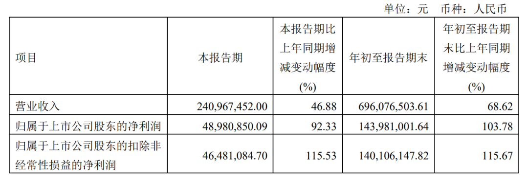 21年第三季度,皓元医药实现营业收入24096.74万元,同比增长68.62%,实现归属于母公司所有者的净利润4898.08万元,同比增长103.78%;实现归属于母公司所有者的扣除非经常性损益的净利润4648.1万元,同比增115.67%。