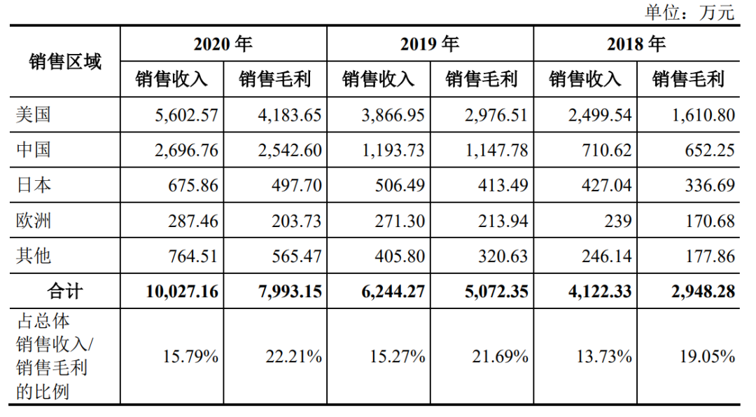 从地区划分,皓元医药主要市场在美国、国内、日本、欧洲等,其中,美国是皓元主要销售区域,在美国的销售收入一直位列第一,2020年超5600万元。