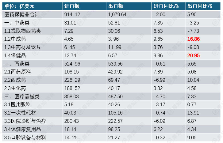 数据来源:中国医药保健品进出口商会 | 摩熵咨询整理