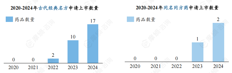 截图来源:摩熵咨询《数据透视:中药创新药、经典验方、改良型新药、同名同方的申报、获批、销售情况》报告