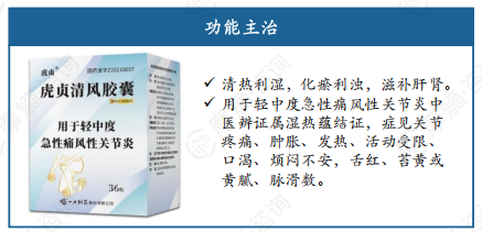 虎贞清风胶囊临床优势显著,可明确用于急性痛风性关节炎,急性期控制症状疗效显著,且滋补肝肾兼顾治本,在心血管系统、肝肾功能、消化道溃疡、痛风石破溃等方面可能带给痛风患者更多获益。同时安全性佳,禁忌相对较少。