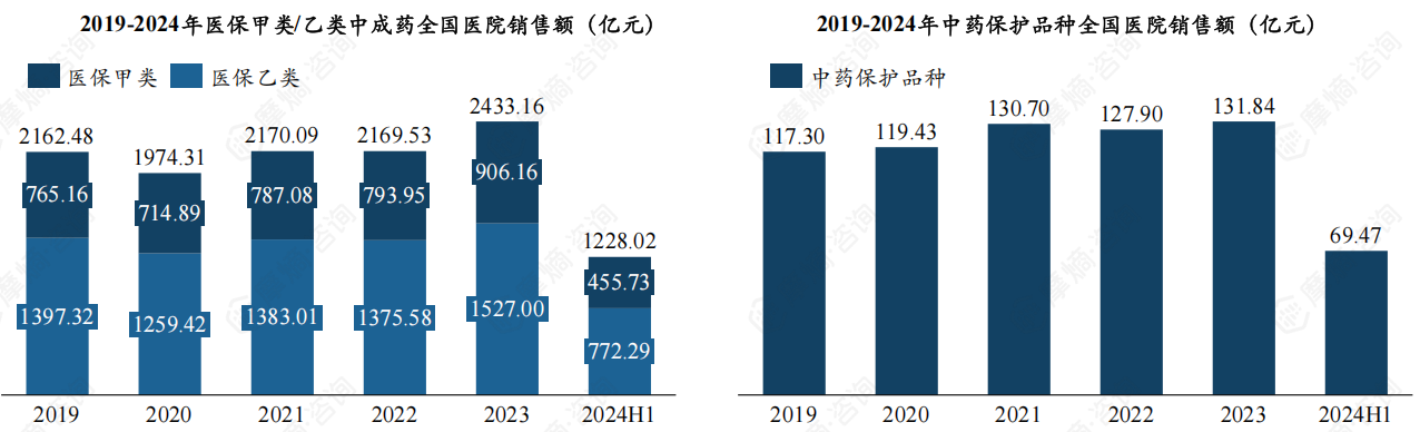 2023年医保乙类中成药院内销售额超1500亿元,中药保护品种销售额约130亿元
