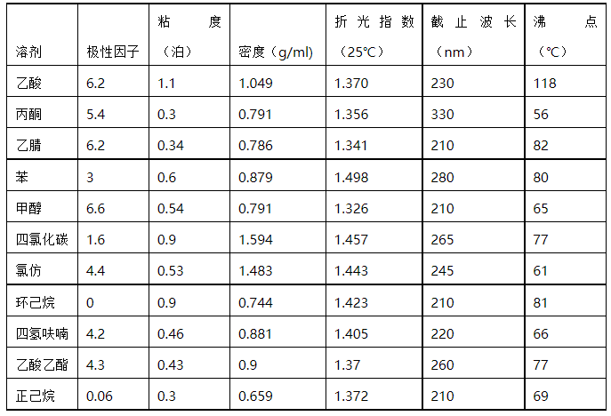 表1. 常见溶剂的物理性质