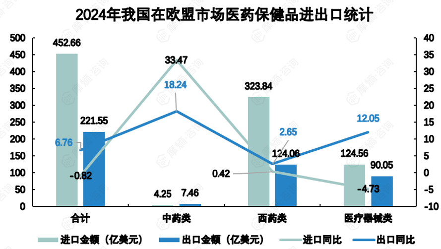 我国对欧盟市场的医药出口额达到 221.55 亿美元,同比增长 6.76%,进一步巩固和拓展了在欧盟这一高端市场的业务版图。尤其是在医疗器械领域,同比增速为12.05%,部分高端诊断设备和先进治疗器械凭借自身的技术优势和性价比,逐渐打破市场壁垒,赢得了欧盟客户的信赖,进一步巩固了在欧盟市场的地位。