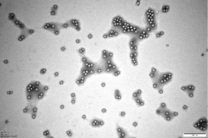 TEM是比较常用的测定空壳率的参考方法,也常常用于识别聚集物、变形衣壳和非衣壳颗粒(如宿主细胞碎片)。TEM是利用加速电子束通过电磁透镜穿透样品,聚焦生成纳米级分辨率图像。TEM使用阴性染色,观测样品为亮,背景为暗。对于AAV (直径约25 nm)来说,样品图像中染色衣壳、部分染色衣壳和未染色衣壳分别代表空衣壳、部分完整衣壳和完整衣壳。
