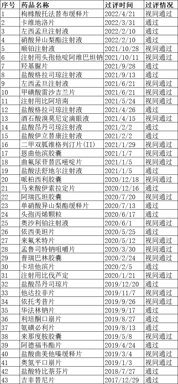齐鲁制药仿制药最新通过一致性评价药品: