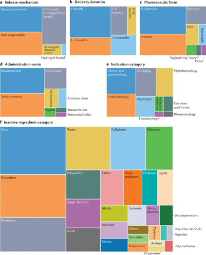 自1953年推出第一个长效给药制剂以来,控释给药在医疗实践中稳步增长。至少有63种长效药物产品已获得FDA批准,并能在1个月至6年甚至更长的时间内长期控释药物。这些递送制剂是定制的,使用各种控释机制、药物形式、给药途径和递送持续时间,专为特定适应症和患者群体而设计。超过60种不同的材料被用作长效给药制剂中的非活性成分。