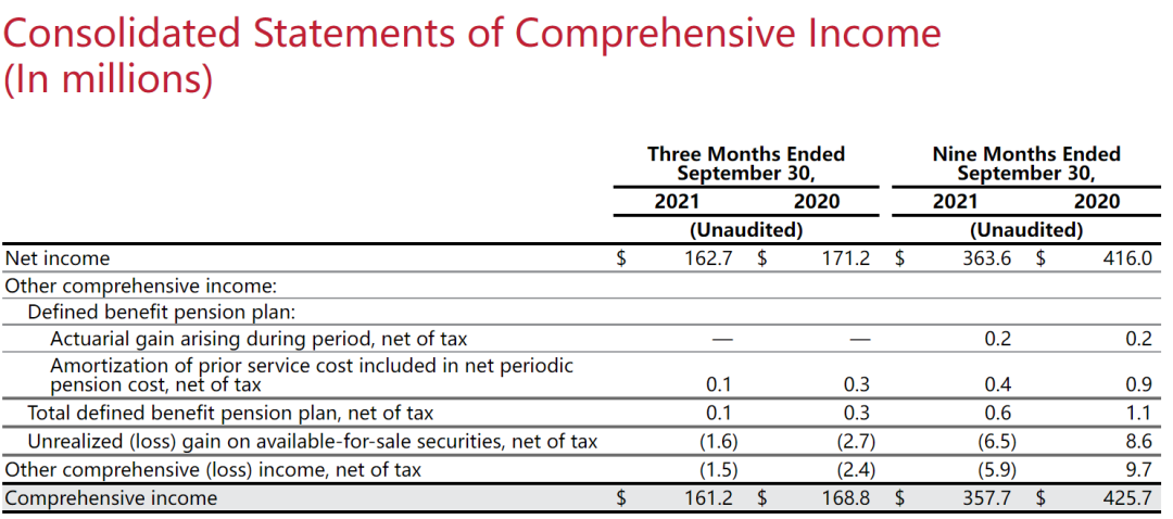 2021年11月3日,United Therapeutics 发布2021财年三季报,综合全面收益表: