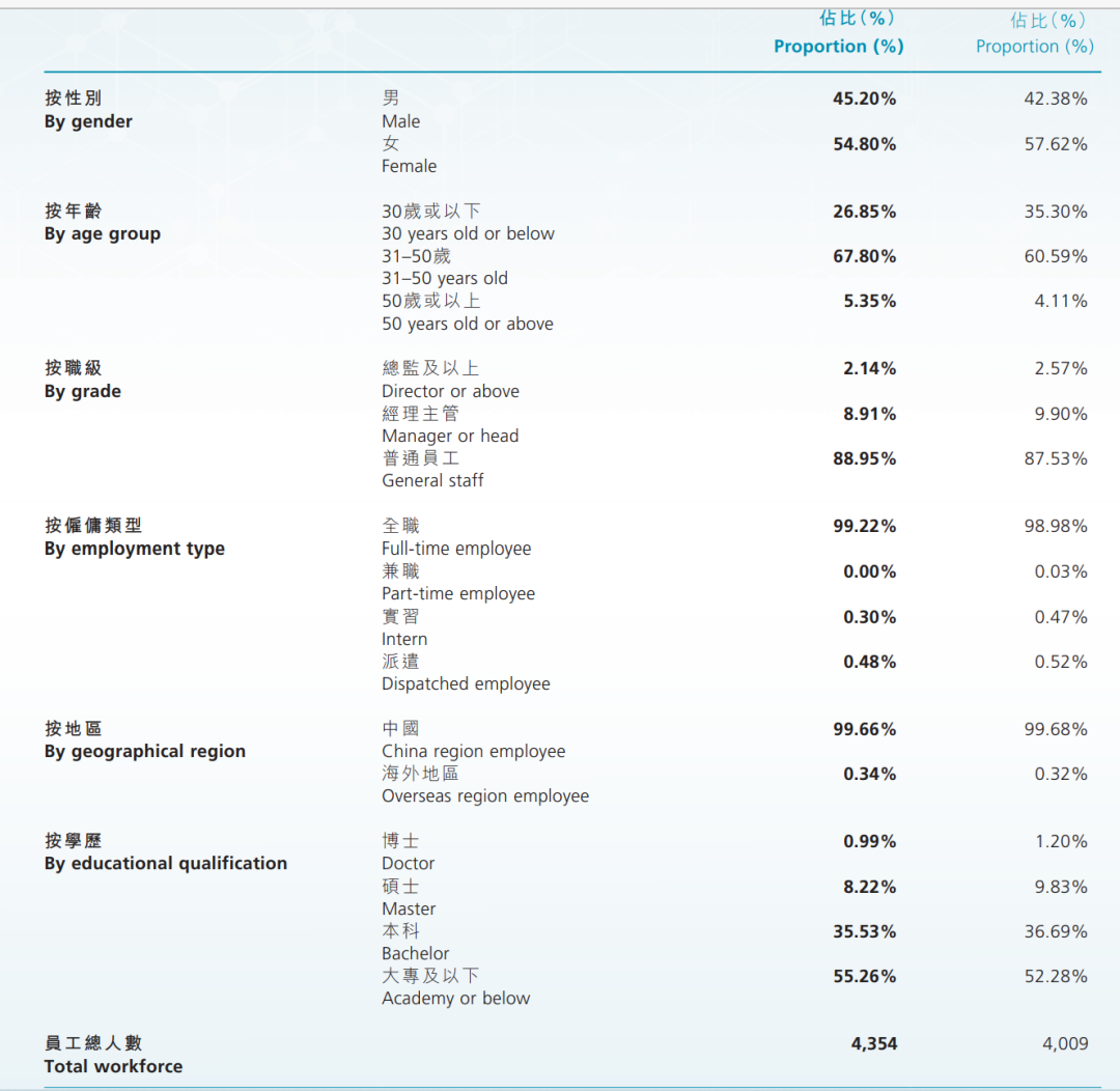 据2021年6月四环医药发布的《环境、社会及管治报告2020》披露,员工相关信息如下: