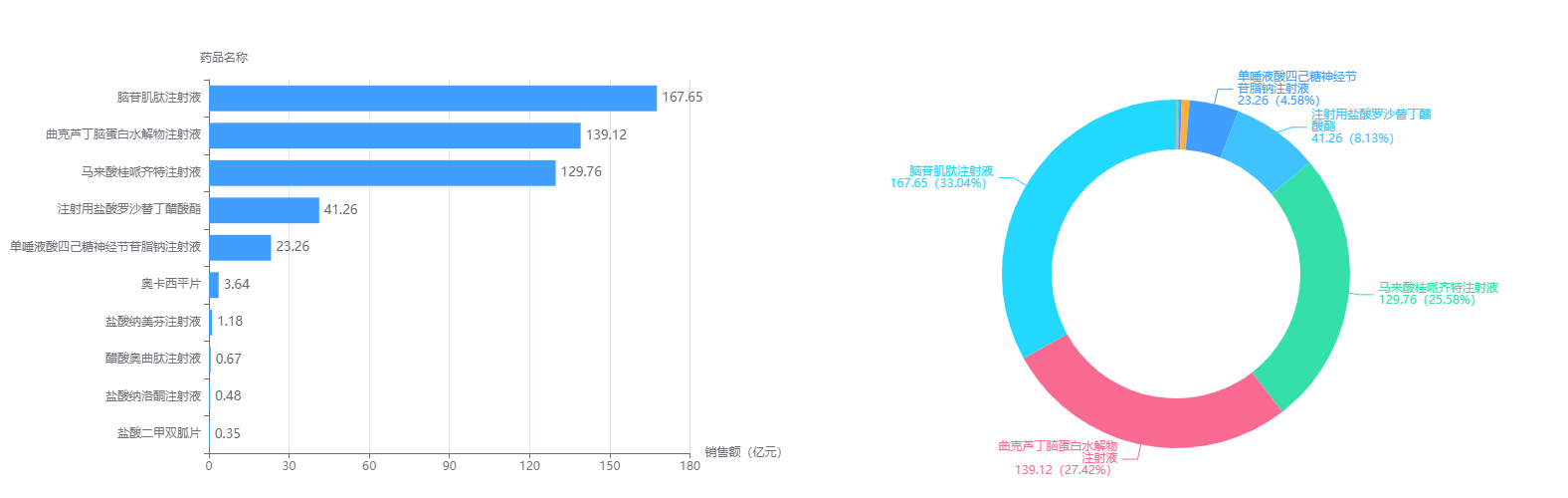 据药融云统计,四环医药近年在我国院内的年销售额曾创下近90亿元的好成绩,主要由3种药品贡献。其中,售卖的最好的是脑苷肌肽注射液,累计创下167亿的销售额。其次是曲克芦丁脑蛋白水解物注射液,累计售卖139亿元,然后是马来酸桂哌齐特注射液,售卖129亿元。