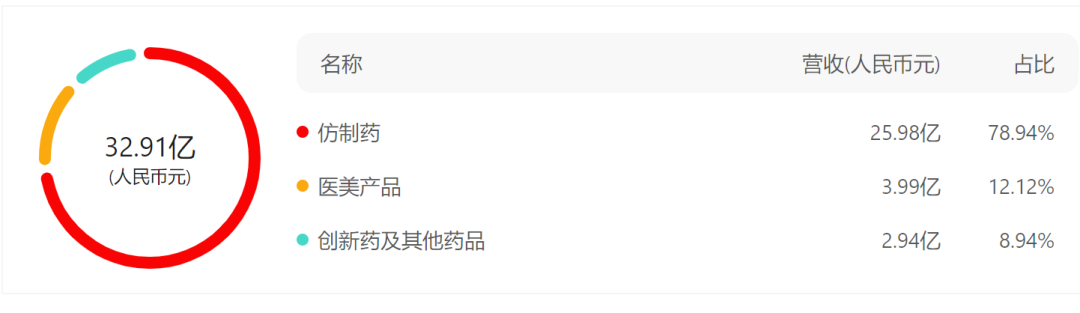 2021年,四环医药实现总营业额32.91亿元,较2020年同期的总收益24.64亿元,同比增长33.6%。年报显示,该增加主要由于新业务板块。其中,四环医药医美业务板块实现营收3.9亿元,同比增长1,383.3%,主要是因为肉毒毒素乐提葆®实现上市销售。仿制药业务板块实现收益人民币25.9亿元,同比增长18.2%。