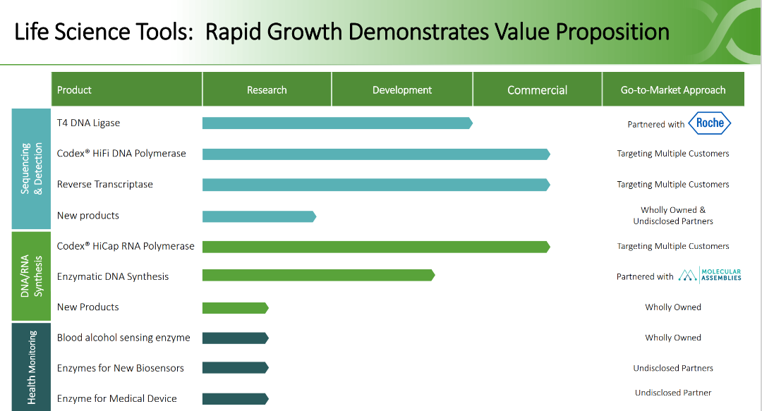 3.推出脱氧核糖核酸合成酶产品销售,助推Molecular Assemblies下游产业取得成功;