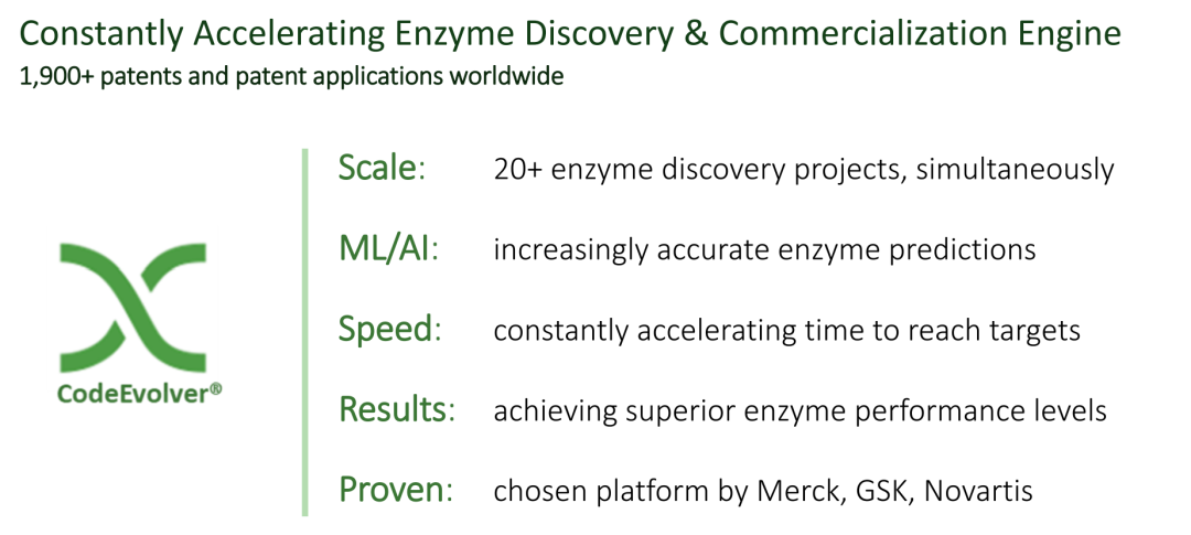 1. 授权CodeEvolver蛋白质工程技术平台,将此技术平台授权给第三方,以便第三方能够利用自己的内部蛋白质工程能力创建节省成本的生物催化剂解决方案;
