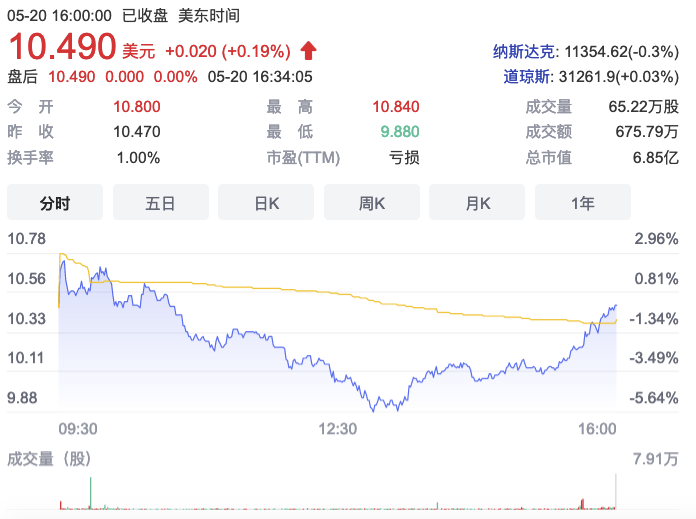 截止美国当地时间2022年5月20日,Codexis每股价格$10.49,总市值约$6.85亿。