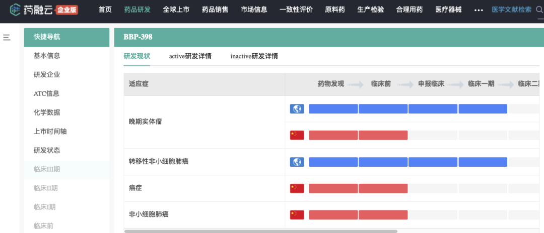 BBP-398适应症研发阶段