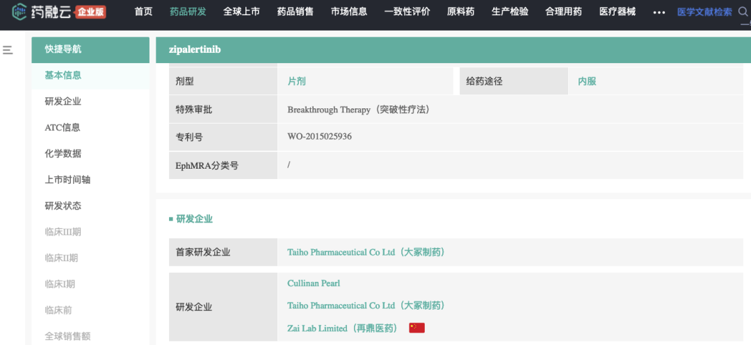 截图来源:药融云全球药物研发数据库