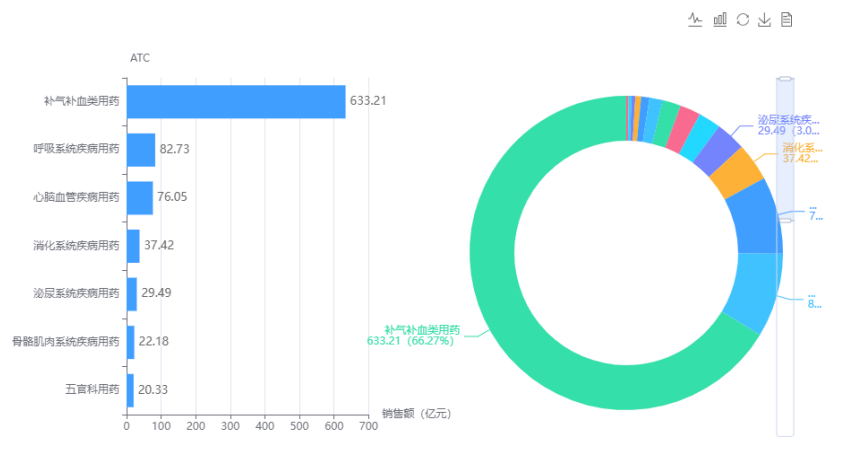 零售药店的销售中,消费属性的补气补血用药是市场规模最大的类别。补气补血类中成药 OTC 除具备基本的治疗属性外,还具备较强的保健属性、金融属性。