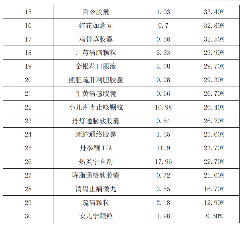 2019-2021医院中成药市场规模