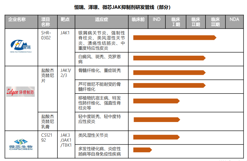 国内研发企业中,恒瑞医药、泽璟生物JAK抑制剂进展最快