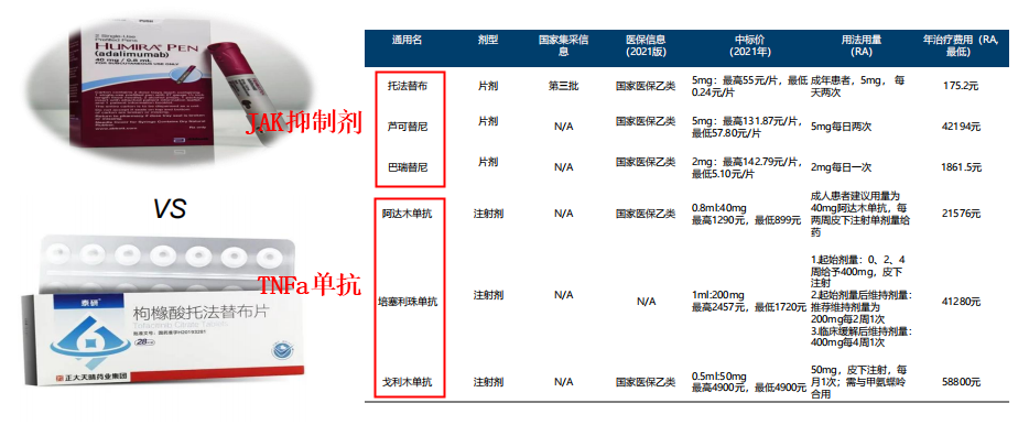 四、JAK抑制剂相对于TNFα单抗更具有经济性和给药便利性优势
