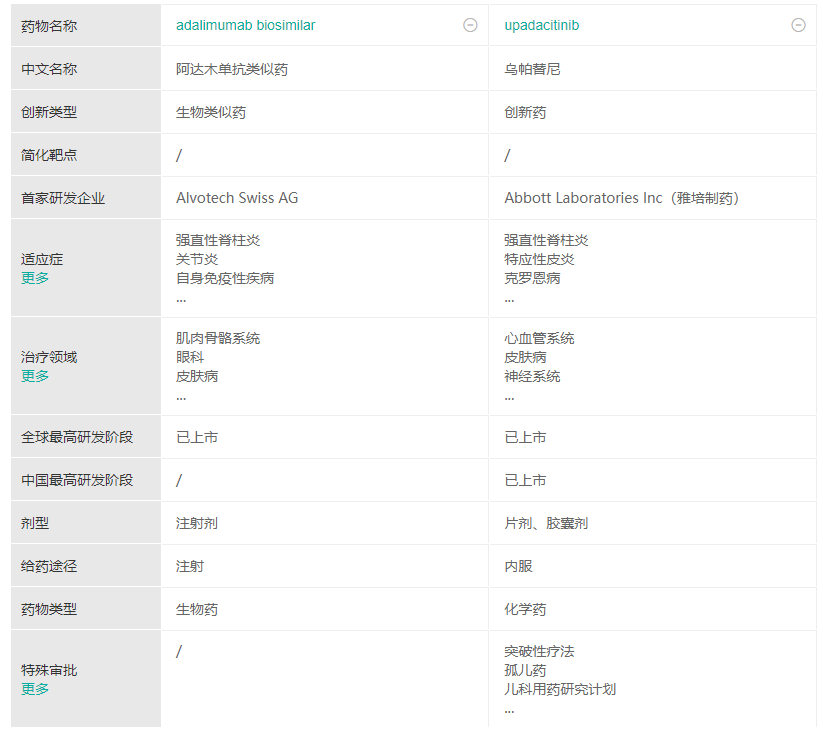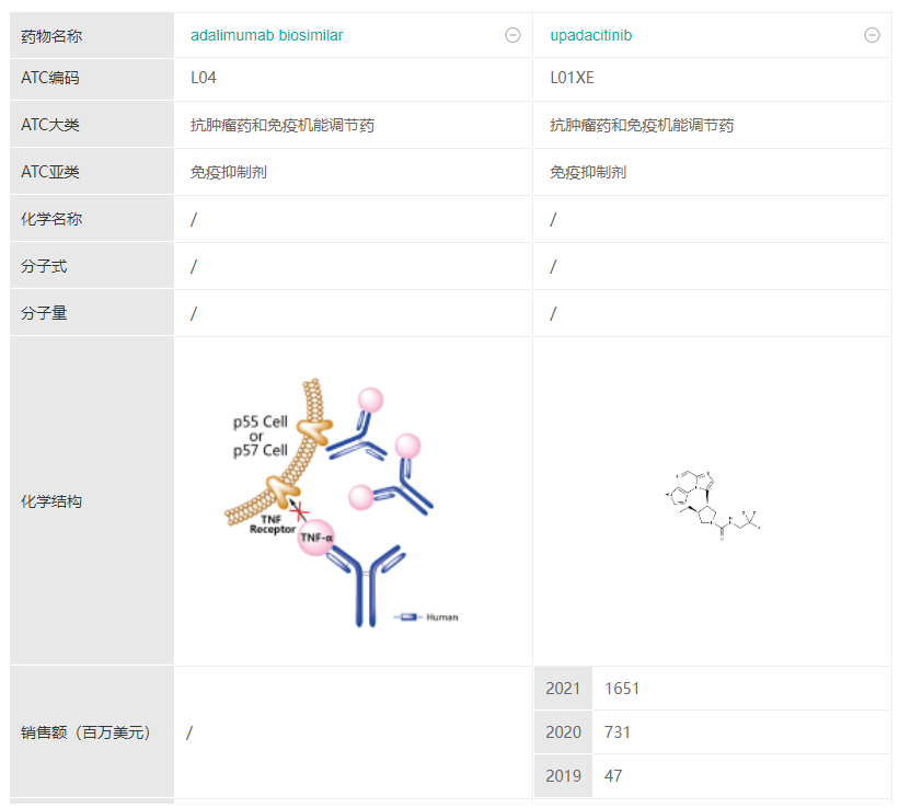 乌帕替尼与阿达木单抗药物比较