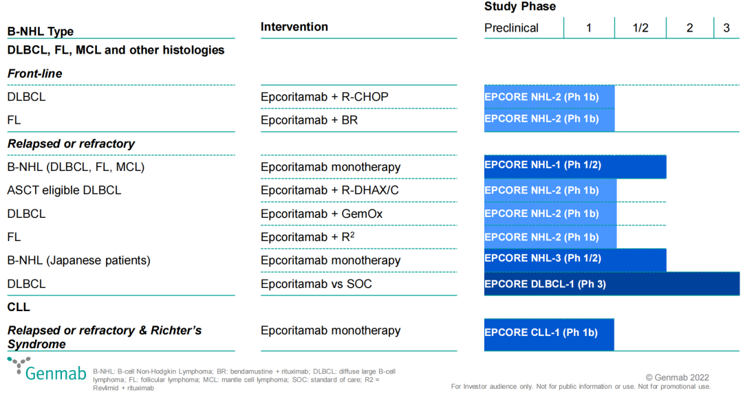 如上图所示,基于Genmab广泛的对外合作关系,公司另有多个合作项目也已处于临床开发阶段。