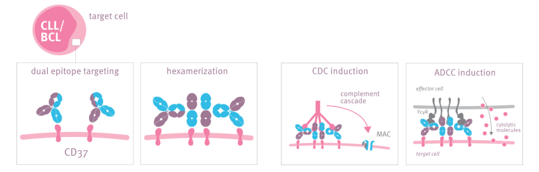 DuoHexaBody®平台将DuoBody®平台的双特异性靶向能力与HexaBody®平台的六聚化增强能力相结合,用于构建具有六聚体增强能力的双特异性抗体;