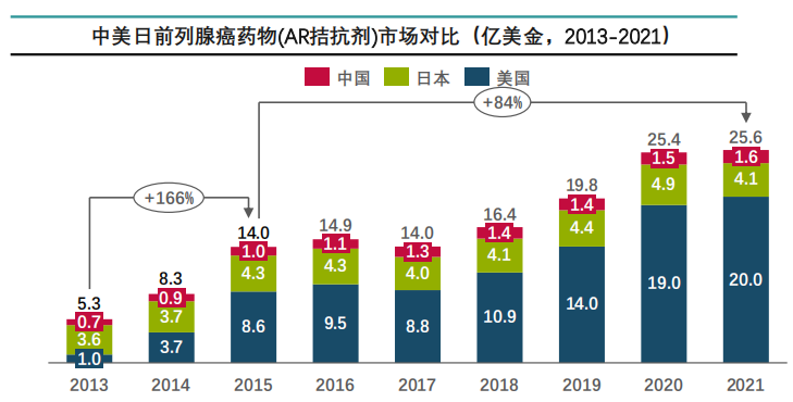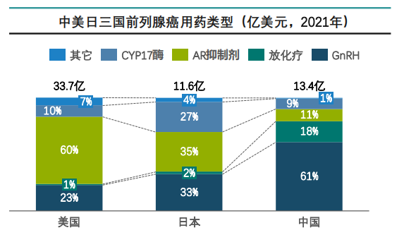 2.中美日前列腺癌用药市场差异