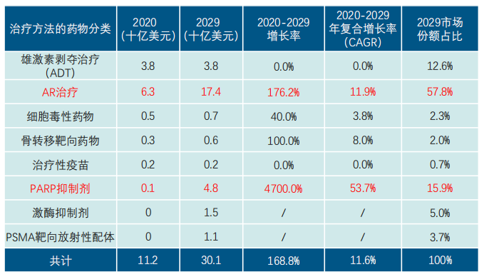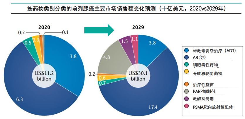 未来十年,前列腺癌治疗领域AR抑制剂将占市场大头,靶向药物、PSMA靶向药物将呈现增长态势,部分药物及疗法将被替代。