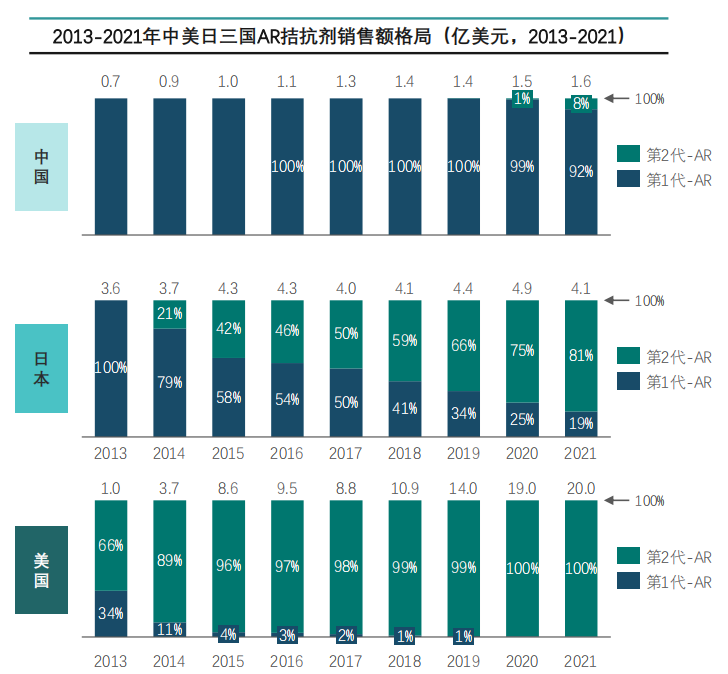 3.中美日AR拮抗剂市场