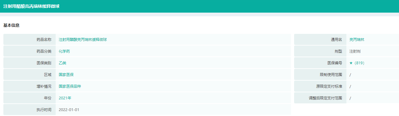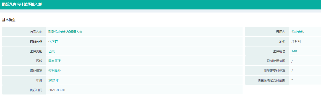亮丙瑞林/戈舍瑞林医保目录信息