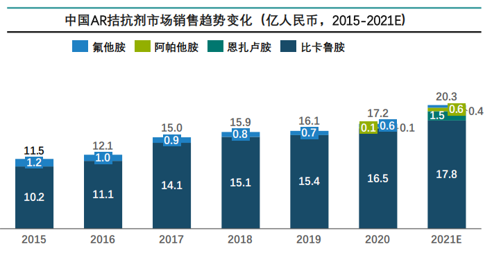 中国AR拮抗剂未来有较大的增量市场,欧美市场恩杂鲁胺销售额最高。