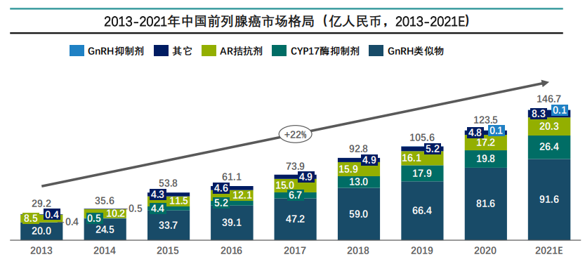 中国前列腺癌市场增长迅速,多个药品降价进入医保,未来新品上市存在较大市场并有降价压力。