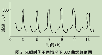 上图为葡萄糖酸锌在不同光照时间下的差示扫描量热法曲线峰形图,由图可知:当葡萄糖酸锌在光照7小时后, 差示扫描量热法(DSC)曲线峰温及峰形开始发生变化,这说明葡萄糖酸锌的光稳定性较差。