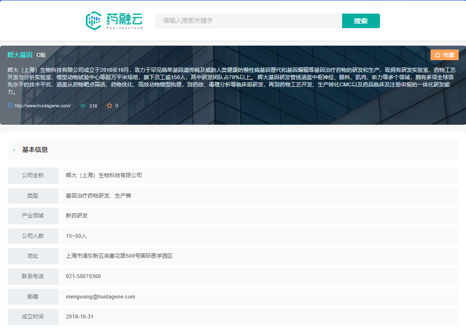 辉大(上海)生物科技有限公司(下称“辉大基因”)2018年10月成立于中国上海,致力于罕见病单基因遗传病及威胁人类健康的慢性病基因替代和基因编辑等基因治疗药物的研发和生产。辉大基因现拥有研发实验室、药物工艺开发与分析实验室、模拟动物实验中心等超万平米场地。