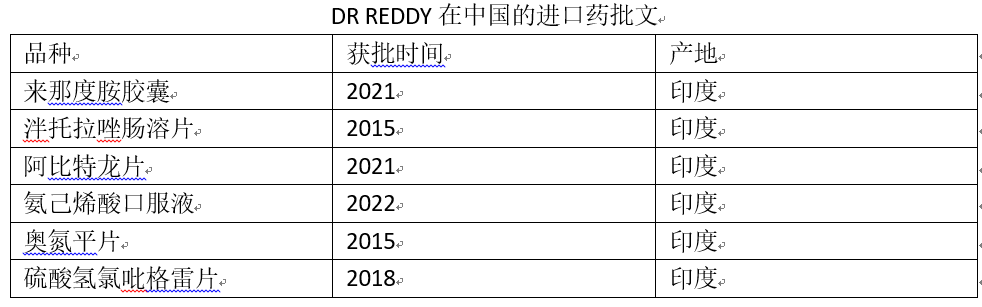 瑞迪博士(DR REDDY)是印度最早国际化的仿制药企业,其国际影响力不必说。虽然DR REDDY在中国市场的布局很早,但影响力一直非常有限。天眼查显示,昆山龙灯瑞迪由DR REDDY控股,拥有批文24个,主力产品为尼麦角林、雷米普利和苯溴马隆等,2017年总销售额约3.6亿元(IQVIA入院价,下同)。进口产品方面,DR REDDY一共拥有9个批文,涉及来那度胺、泮托拉唑、阿比特龙、氨己烯酸和奥氮平等5个品种,大部分批文在2015年之后获得,2017年总销售额约2.0亿元。