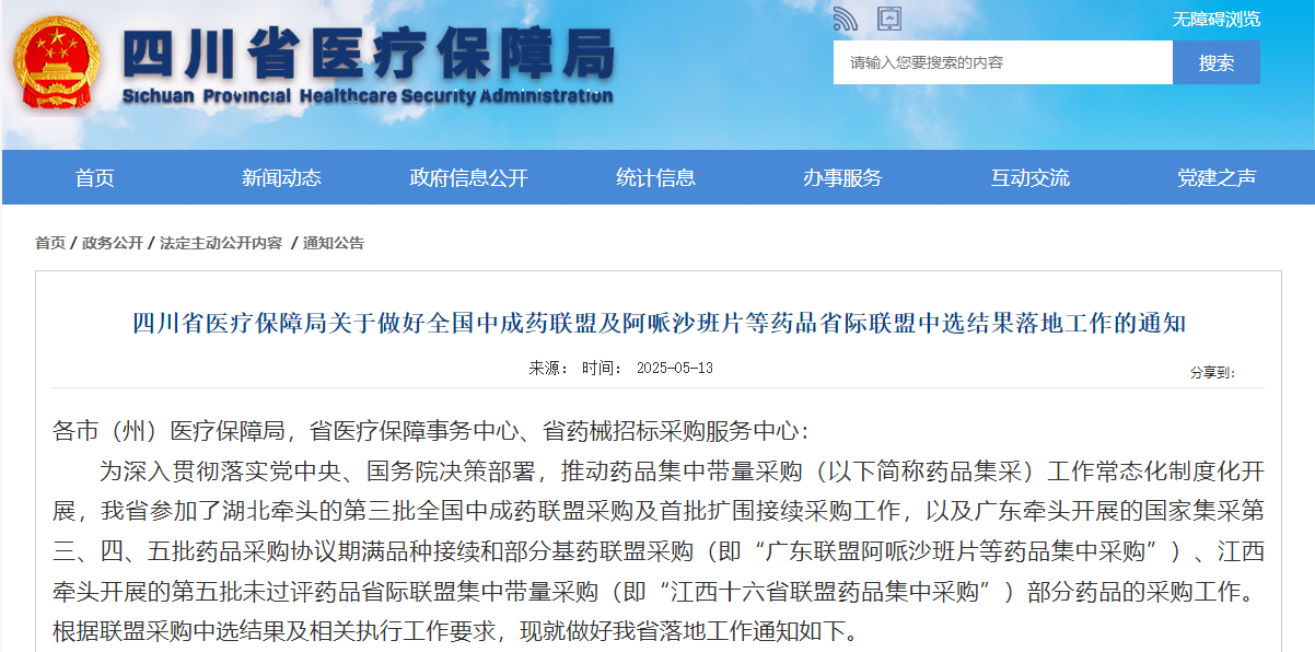 四川同步落地执行三个集采项目,即中成药集采、广东联盟接续及江西十六省联盟项目,提升政策协同效应。