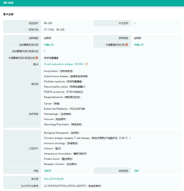 伊基仑赛注射液(IBI-326)基本信息