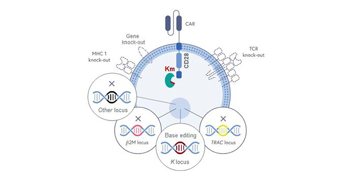 驯鹿生物原创的具有自主知识产权的异体CAR-T细胞技术,可与现有通用CAR-T策略组合应用,适用于T,NK,NKT,iPSC来源的多种免疫细胞。