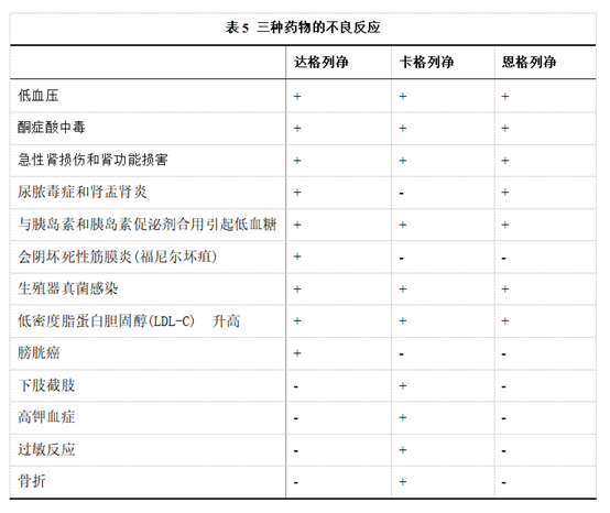 现在世界上一共有18种格列净类降糖药,中国上市了3种,为卡格列净、恩格列净、达格列净,它们之间降糖作用的差异性不大。差异性主要在服用要求,以及不良反应发生率上。如下表4,表5所示。