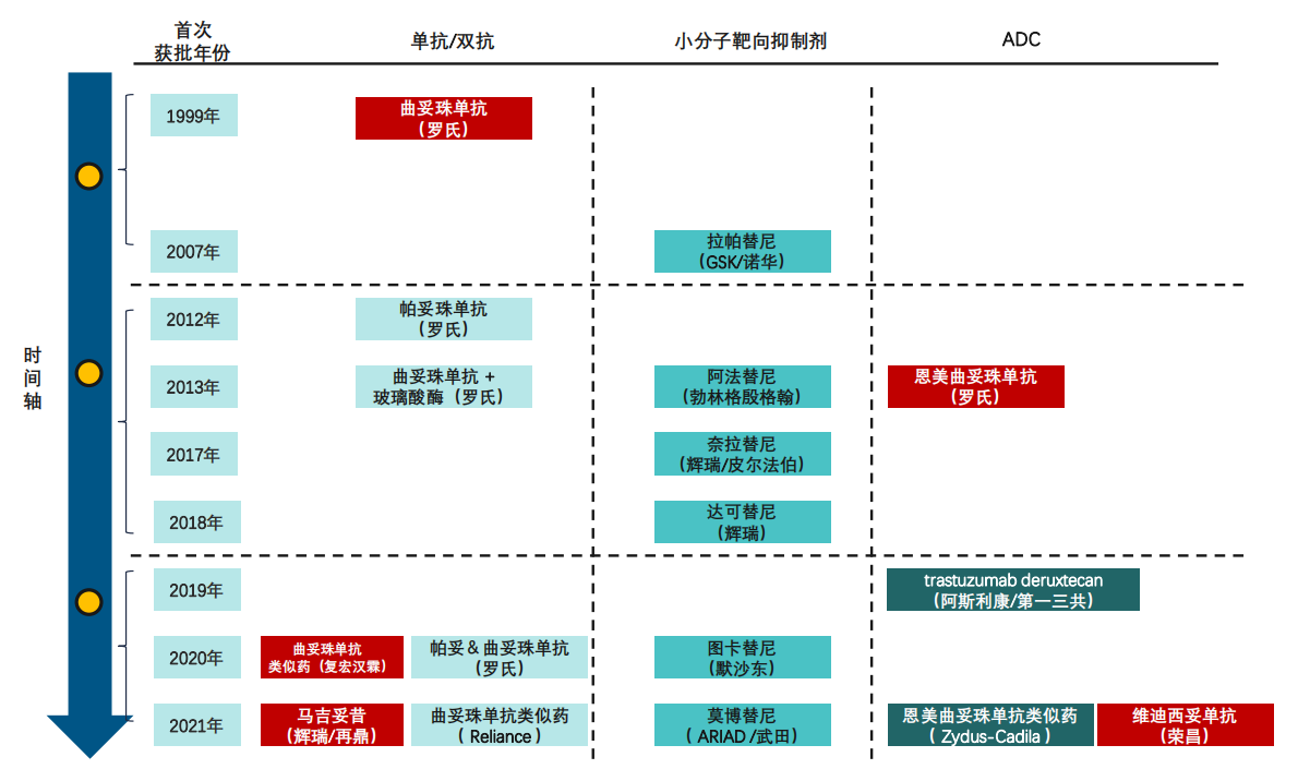 HER2靶向药物上市时间轴