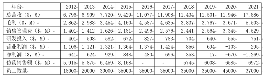 2021年,迈兰与普强合并成为辉致,虽然表观上让公司的销售额规模从2020年的118.2亿美元提高至178.1亿美元,品牌药销售额更是从2020年的52.3亿美元增加到108.4亿美元,且成功打入了中国市场,但在这次合并中辉瑞股东拿走了57%的股权,迈兰股东仅剩下43%,而且合并后销售额的增加几乎来自已经失去专利保护的品牌药(Established products),未来增长潜力很小,不仅如此,因为这次合并,总债务(total liability)从193.7亿美元增加至386.0亿美元——这让人们在辉致上看到了梯瓦的影子,加之2020和2021年的持续净亏损,新公司的市值又只剩下126亿美元,似乎这次合并是个赔本的买卖,当初401亿美元出售给梯瓦反而可能是更好的选择。