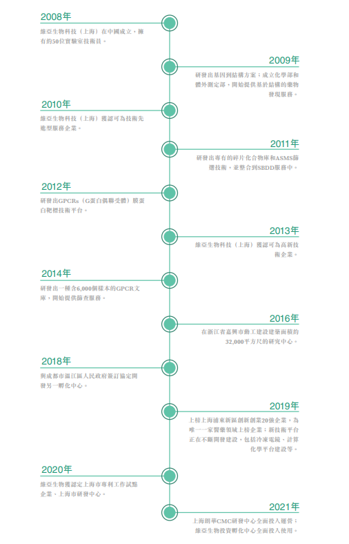 维亚生物于2020年8月收购朗华制药和2020年9月收购信实生物(SYNthesis med chem (Hong Kong) Limited),以并购的方式快速建立全产业链为客户提供最优质服务的能力,使得维亚生物成为全球创新药物研发及生产的一站式服务平台,有效避免了CDMO产业布局投入高且耗时长等痛点。