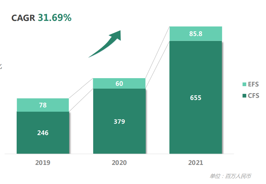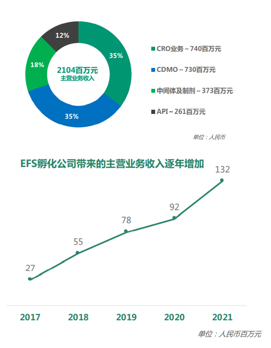 EFS孵化公司带来的营业收入逐年增加,由2017年的2700万元增长至2021年的1.32亿元。
